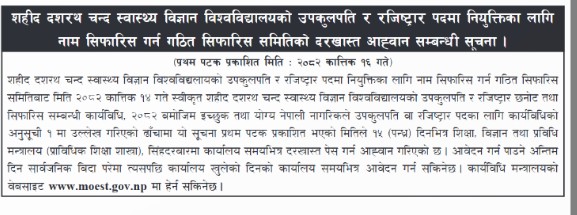 सहिद दशरथचन्द स्वास्थ्य विज्ञान विश्वविद्यालयको उपकुलपतिका लागि आवेदन माग