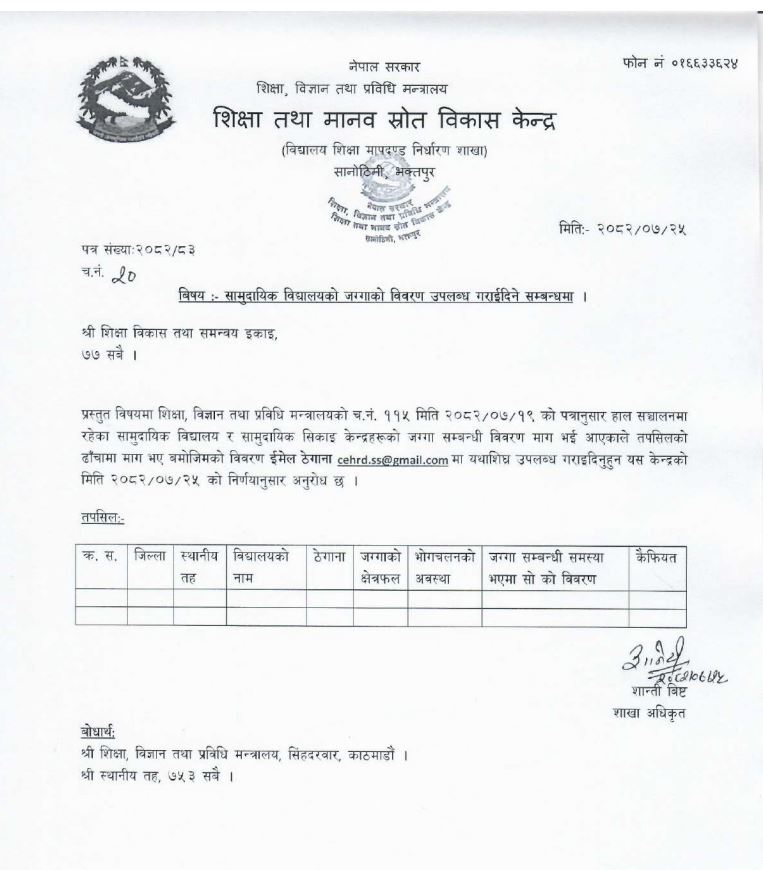 मानव स्रोत विकास केन्द्रले माग्याे सामुदायिक विद्यालयको जग्गा विवरण