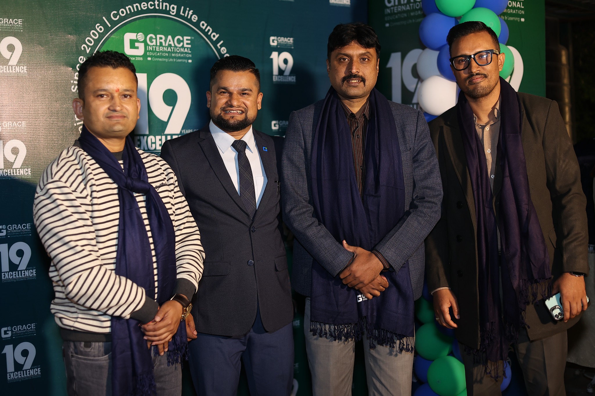 काठमाडाैँ - विदेश अध्ययनमा जान चाहने विद्यार्थीहरुलाई शैक्षिक परामर्श दिदैँ आएको ‘ग्रेस ईन्टरनेशनल’ ले स्थापनाको १९ औँ वार्षिकोत्सव भव्यतापूर्वक सम्पन्न गरेको छ। वैदेशिक अध्ययनमा जान चाहने विद्यार्थीहरुलाई भरपर्दो, विश्वसनीय र गुणस्तरीय परामर्श दिँदै आएको ग्रेस ईन्टरनेशनलले १९ औँ स्थापना दिवस मनाउन सफल भएको छ।