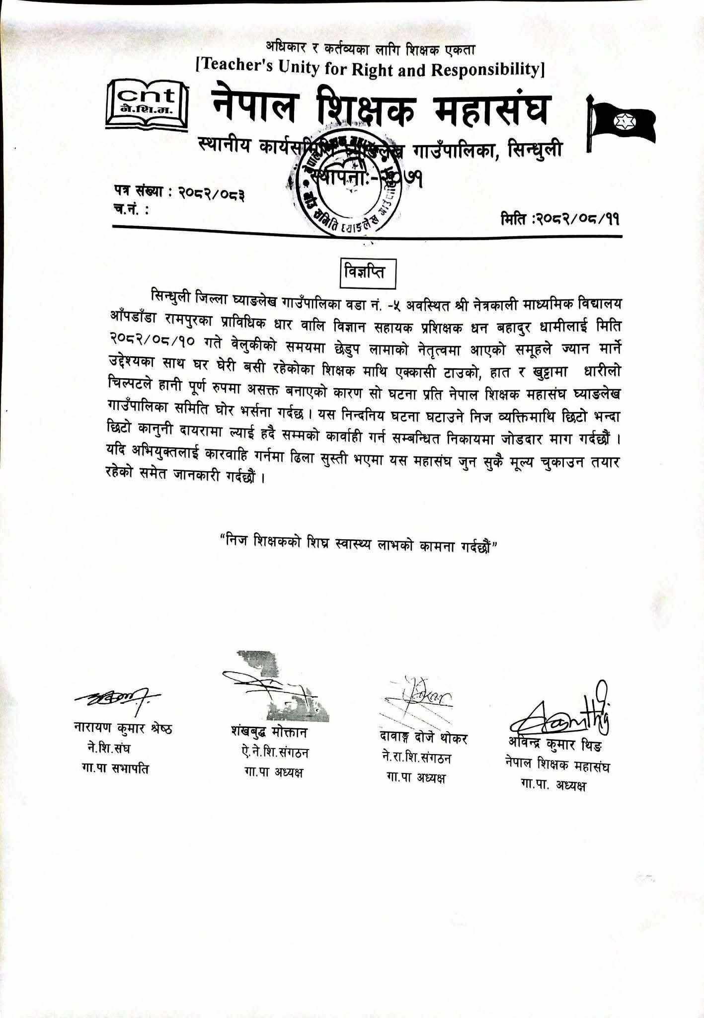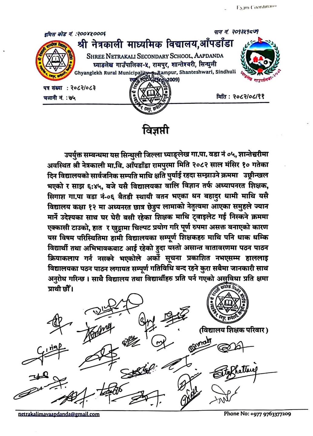 सिन्धुलीकाे नेत्रकाली माविका शिक्षकमाथि घर घेरेर कुटपिट, शिक्षक गम्भीर घाइते