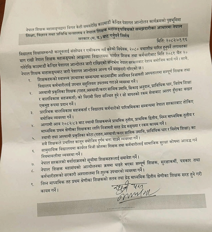 यी हुन् सरकार र महासंघबिच भएकाे ९ बुँदे सहमति