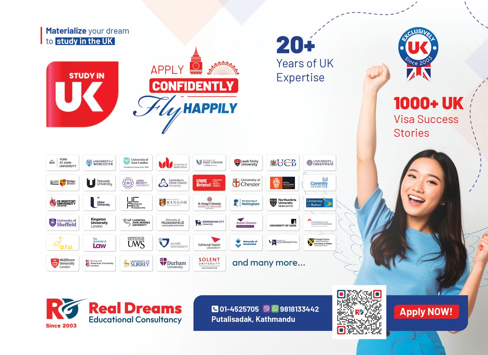 रियल ड्रिम्स एजुकेशनल कन्सलटेन्सीलाई नेपालबाट युके अध्ययनमा जान चाहने विद्यार्थीले लामो समयदेखी रोजाइमा पार्ने गरेका छन्। रियल ड्रिम्सले विद्यार्थीलाई अध्ययनमा जानुपूर्व पूर्व तयारी कक्षाका साथै त्यहाँ गएर विद्यार्थीले गनुपर्ने सम्पूर्ण विषयबारे सत्यतथ्य जानकारी प्रदान गर्छ। रियल ड्रिम्समा युकेमा अध्ययन गरेर आएका अनुभवी कर्मचारी कार्यरत छन्।