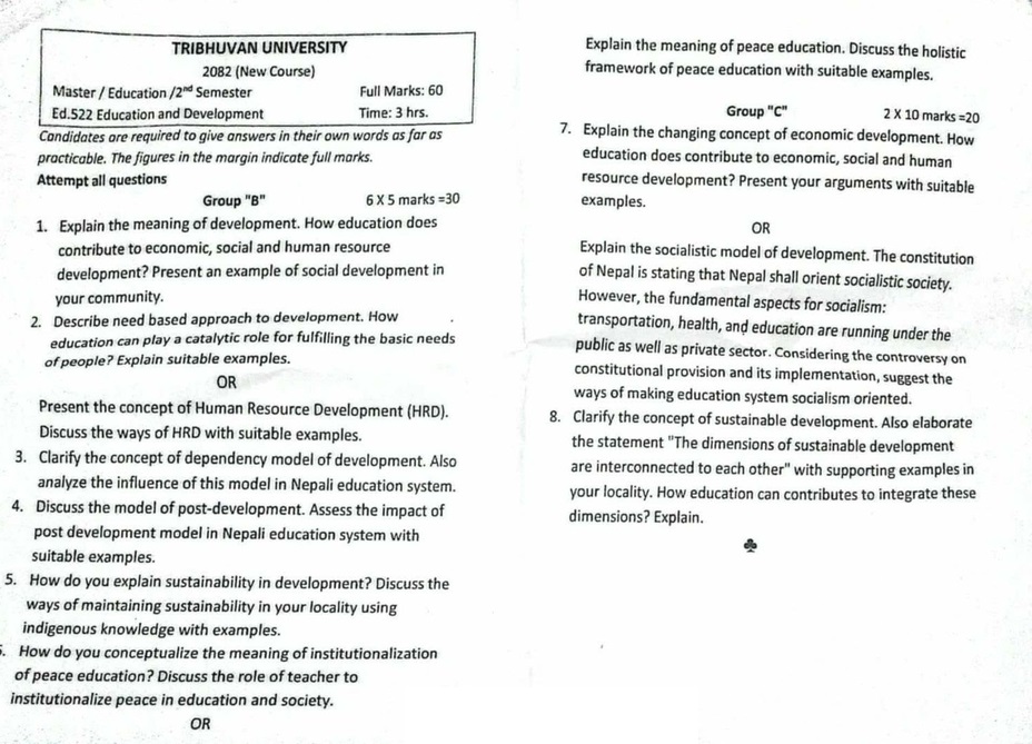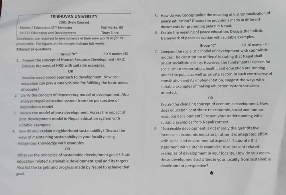 शिक्षा तथा विकास विषयको कोड नम्बर ५३३ को प्रश्नपत्र गतवर्ष (२०८१) सँग अधिकांश प्रश्न हुबहु रहेको छ। ‘अघिल्लो वर्षका प्रश्नहरु तलमाथि पारेर झुक्याउने काम भएको छ,’ एक विद्यार्थीले भने। अघिल्ला वर्षहरुमा पनि प्रश्नपत्र दोहोरिएको भन्दै त्रिविको आलोचना हुँदै आएको थियो।