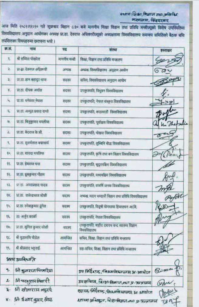 शिक्षा, विज्ञान तथा प्रविधिमन्त्री सस्मित पोखरेलले विश्वविद्यालयका उपकुलपतिहरूलाई मन्त्रालयमा बोलाएर यस्तो निर्देशन समेत दिएको बताइएको छ।